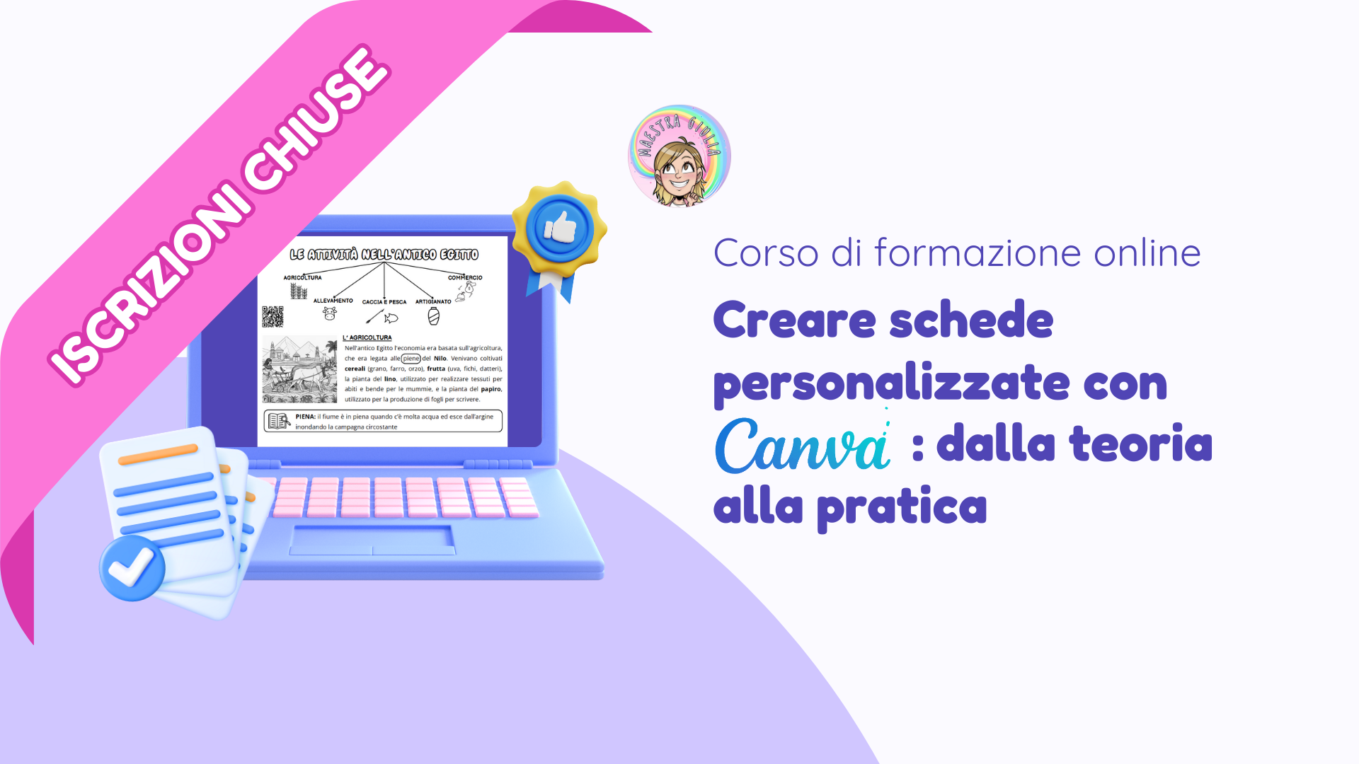 Alla fine del corso, riceverai un attestato personalizzato con il tuo nome, la data e la durata del corso.